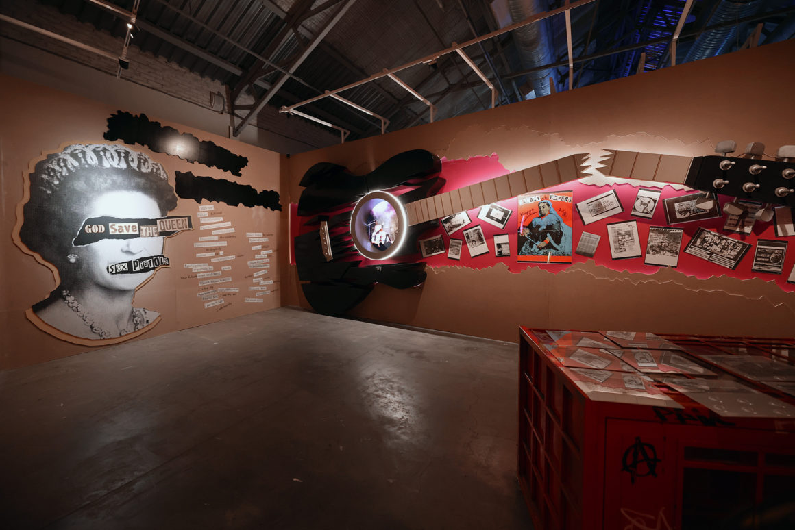 Зал «Истории панк-рока» состоит из нескольких пространств. С самого начала зритель попадает в Англию середины 70-х, где оказывается рядом с витриной культового магазина «SEX», оказавшего значительное влияние на формирование привычного образа панка. В экспозицию вошли знаковые футболки с принтами Джона Доу и Молли Вайт, рубашки и платья от иконы панк-стиля Вивьен Вествуд, постеры в стиле газетных вырезок Джейми Рида, ставшие олицетворением визуального образа панка и послужившие обложками к альбомам культовых Sex Pistols. Кроме того, в пространстве разместились оригинальные авторские ксероксы, предоставленные лондонской галереей Джона Марчанта с разрешения самого Джейми Рида.