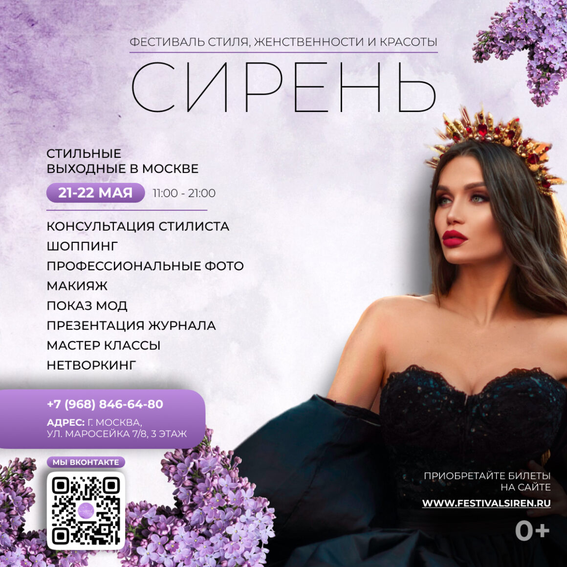 21-22 мая 2022 года пройдет 4-ый фестиваль стиля, женственности и красоты “Сирень”.