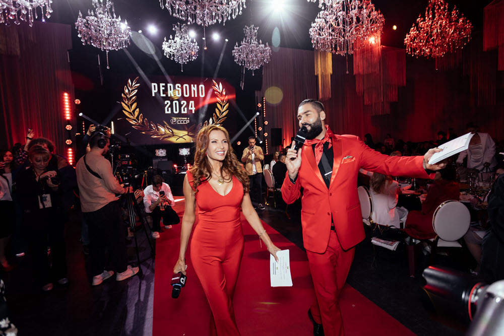 Всё пространство банкетного зала было оформлено в стилистике советских будней. Красные галстуки, повязываемые на входе, переносили участников премии во времена пионерии, а популярные в начале 90-х жевательные резинки дарили многим забытую радость из далёкого советского детства. В этом году премия так и называлась: «PERSONO года – 2024. Сделано в СССР».