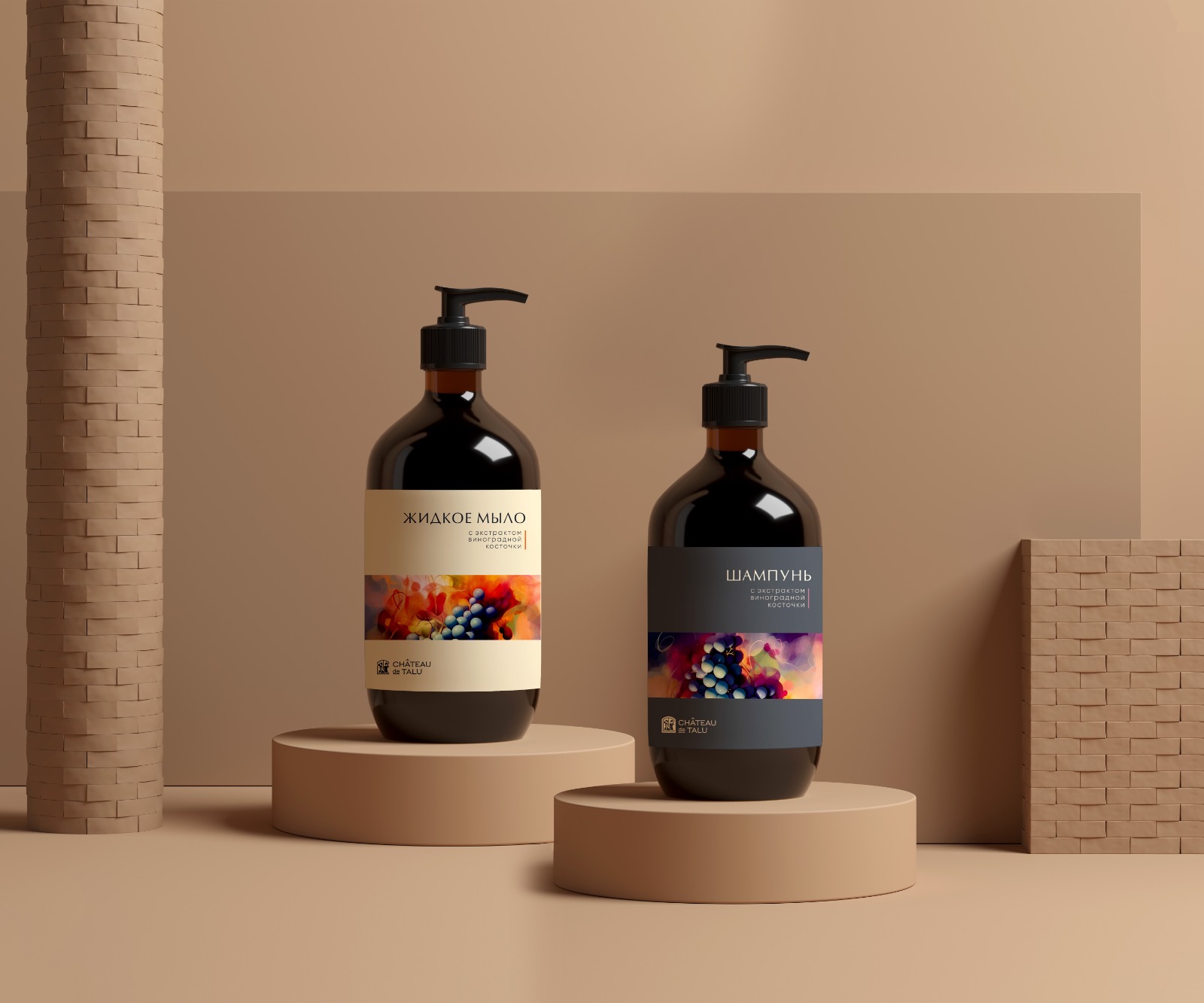 Уважение, бережное отношение и любовь к родной земле вдохновили команду Шато де Талю на создание косметики под собственным брендом. В коллекции представлены шампунь, жидкое мыло и спрей-мист с экстрактом виноградной косточки. Тираж каждого средства — 500 штук.