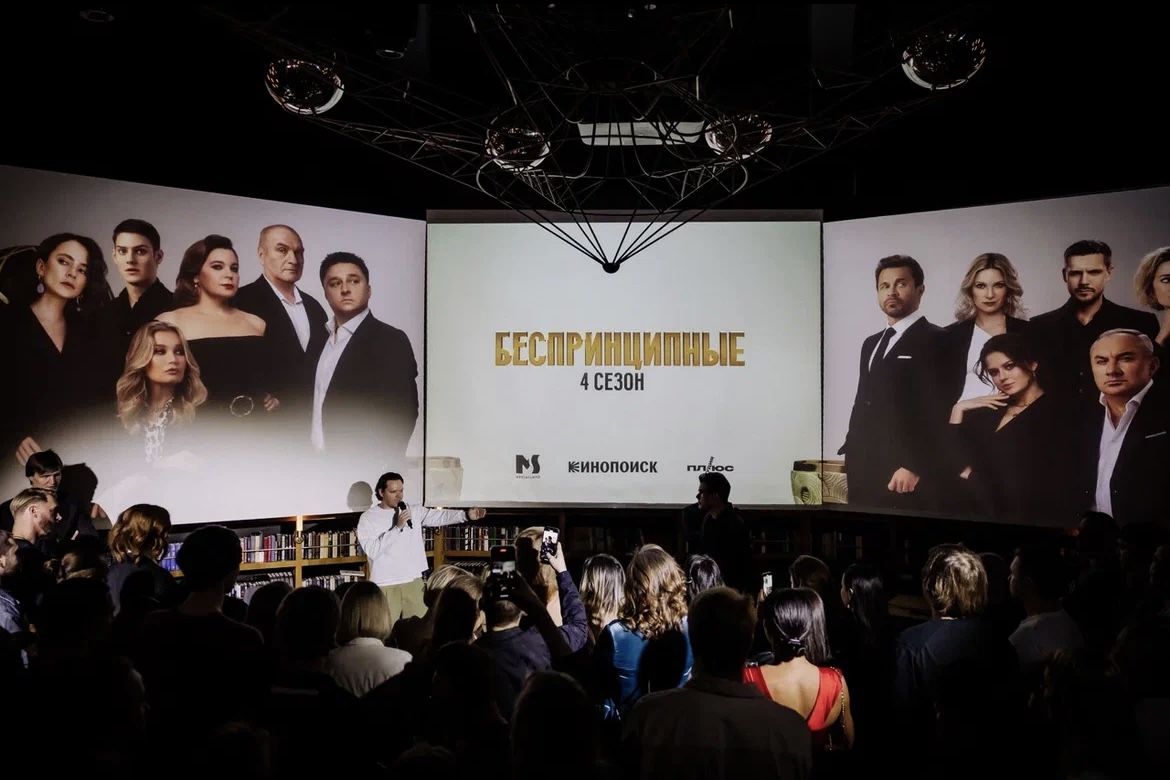 На Кинопоиске 23 марта стартует продолжение самой популярной комедии сервиса сериала «Беспринципные». Презентация четвертого сезона состоялась вчера в бар-клубе Community. Перед показом проект представили продюсер Данила Шарапов, автор идеи Александр Цыпкин, продюсер и руководитель Плюс Студии Михаил Китаев, а также актёры Павел Деревянко, Анна Слю, Кристина Бабушкина, Ксения Утехина, Павел Табаков, Марина Доможирова, Катя Кабак и другие.