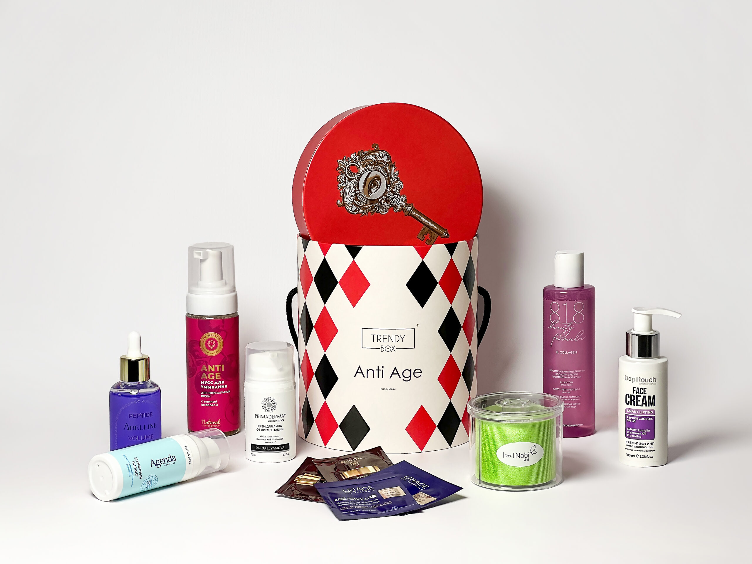 Anti-Age Box — это не просто косметика, это личный ритуал, в котором красота начинается с заботы, а молодость — с удовольствия. Trendy Box собрали продукты, которые работают деликатно, но уверенно. Кожа благодарит, вы сияете, время замедляется.