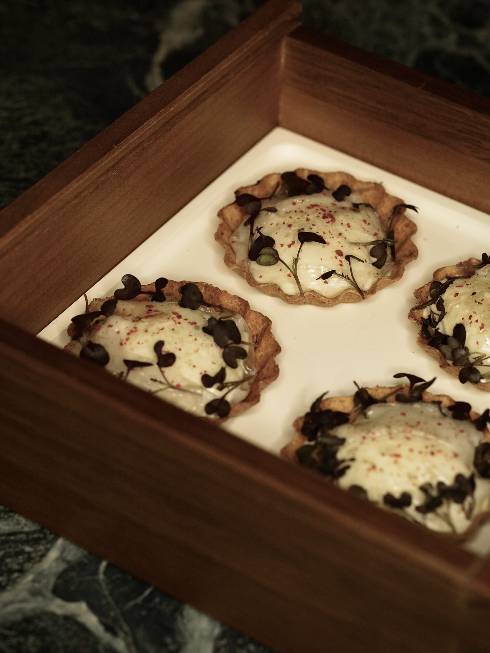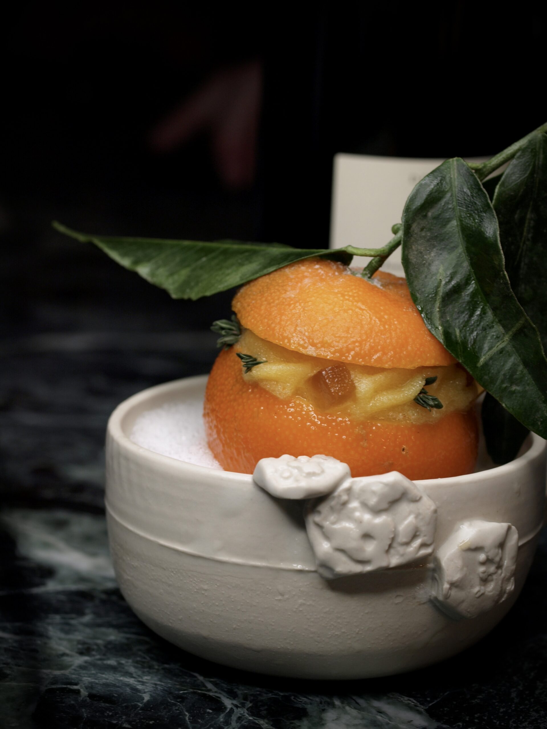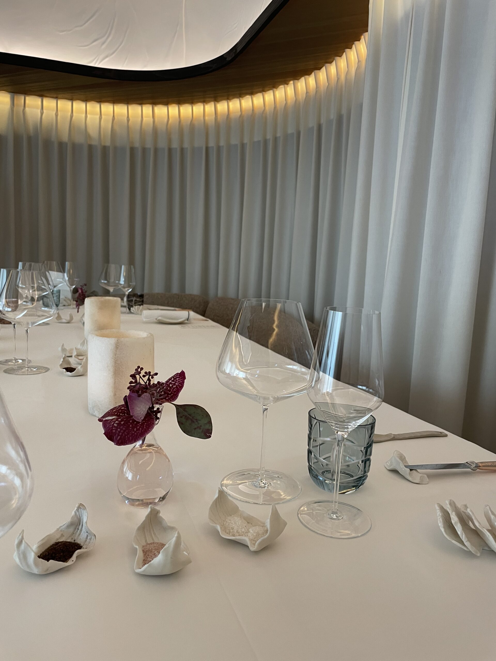 Для Сильвестра Вахида гастрономия – это искусство жить в гармонии и безмятежности. Его философия нашла свое отражение не только в меню, но и в интерьерах ресторана Sylvestre, разработанных совместно с декоратором Тристаном Ауэром и воплощенных в жизнь дизайнером Жерома Бугара, специалистом по современным пространствам. Вместе они придумали и создали комфортную и одновременно интерактивную зону. Бархатный потолок над элегантным залом с 4 столами, отсылающий к заснеженным вершинам; благородные материалы, такие как вулканический камень, темное дерево, мрамор, кожа с эффектом ржавчины, кованый металл; задернутые шторы и настольные лампы с устройствами для зарядки телефонов, – все это входит в концепцию ресторана завтрашнего дня. Внимательный к мельчайшим деталям Вахид обратился к лучшим французским мастерам, чтобы достойно оформить свой новый ресторан: для подачи блюд он выбрал дизайнерскую посуду от Isabelle Poupinel и столовые приборы Christofle и Bernardeau, а меню украсили изящные графичные рисунки художницы Мари Филд, выполненные вручную.