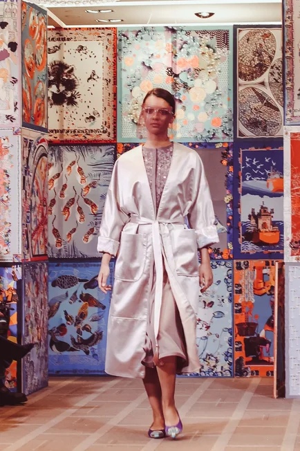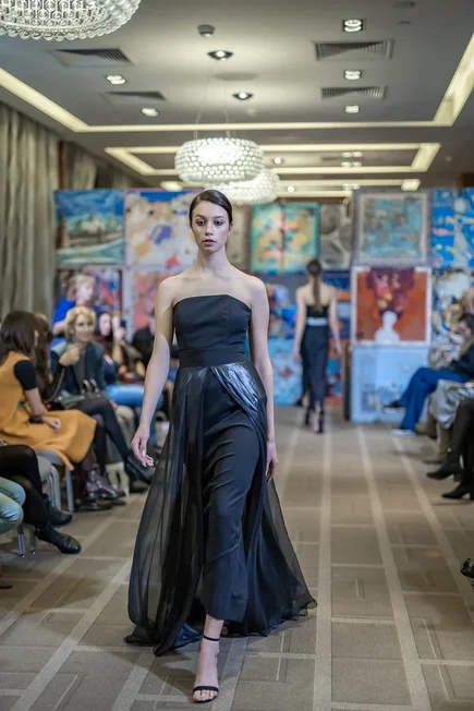 Свежесть нежного весеннего образа продемонстрировал модный дом дизайнера Саши Грузиновой (@sashagruzinova). На подиуме была показана коллекция «Шелковый путь». Философия бренда – это не погоня за трендами, а переосмысление эстетики романтики, с подчеркнутой элегантностью образа. Дизайнер использует роскошные ткани ведущих мировых брендов, а также уникальные вышивки в стилях «барокко» и «модерн». Головные уборы предоставлены брендом Turban SVS by Vera Sukhinina.