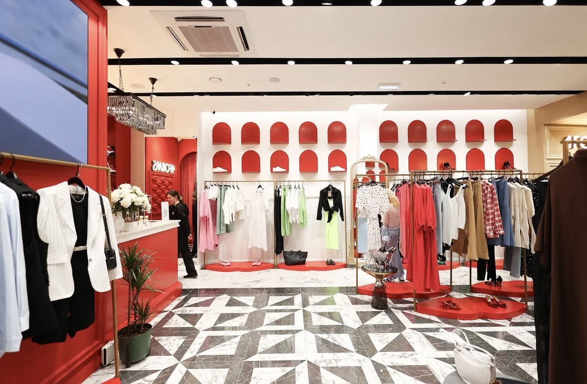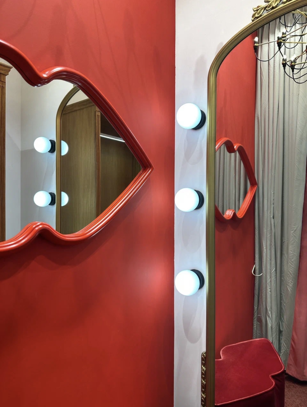 Новая концепция магазина действительно удивила своей уникальностью и роскошью. Насыщенный красный оттенок, который сразу дарит ощущение, что ты королева. Как всегда магазин оснащен релакс-зонами, а также просторными примерочными, внутри которых – вода, орешки, влажные салфетки, одноразовые тапочки  и цветы — все для комфорта посетительниц.