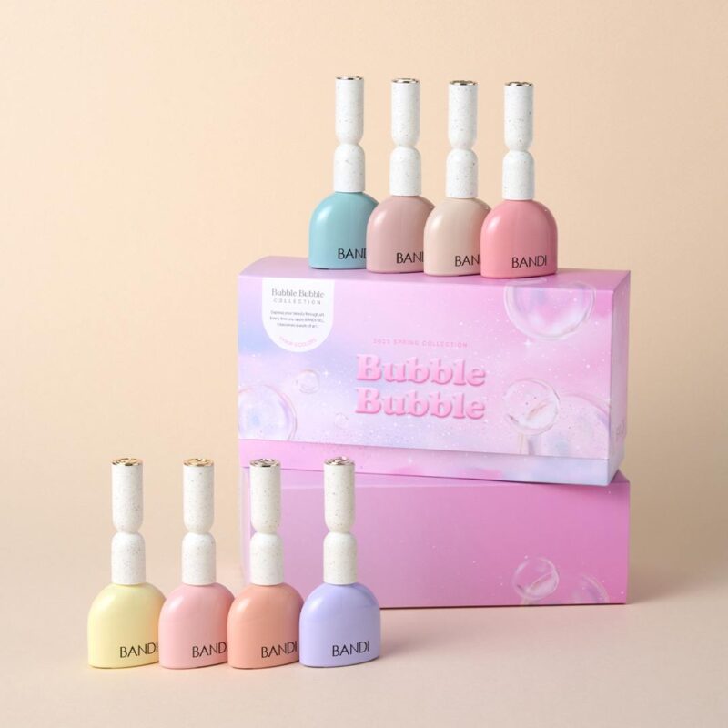 Новая коллекция гелей и лаков Bubble Bubble от южнокорейского бренда Bandi, представленная в сети салонов «Пальчики», идеально вписывается в эту воздушную, едва уловимую эстетику. Восемь полупрозрачных оттенков – от дымчато-розового и размытого бежа до туманного голубого и нежной мяты – создают эффект легкости и естественного сияния, словно покрытые тонкой мыльной пленкой.