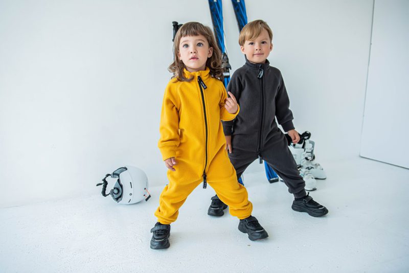 Верхняя одежда шьется из современного высокотехнологичного материала софтшелл. Комбинезоны, куртки и штаны из этой трехслойной ткани легкие и устойчивы к действию влаги, ветра и низких температур. Одежду из софтшелла можно надевать ранней осенью прямо поверх леггинсов и футболки, а ближе к зиме и первым заморозкам — с утепленным комбинезоном или термобельем и флисом.