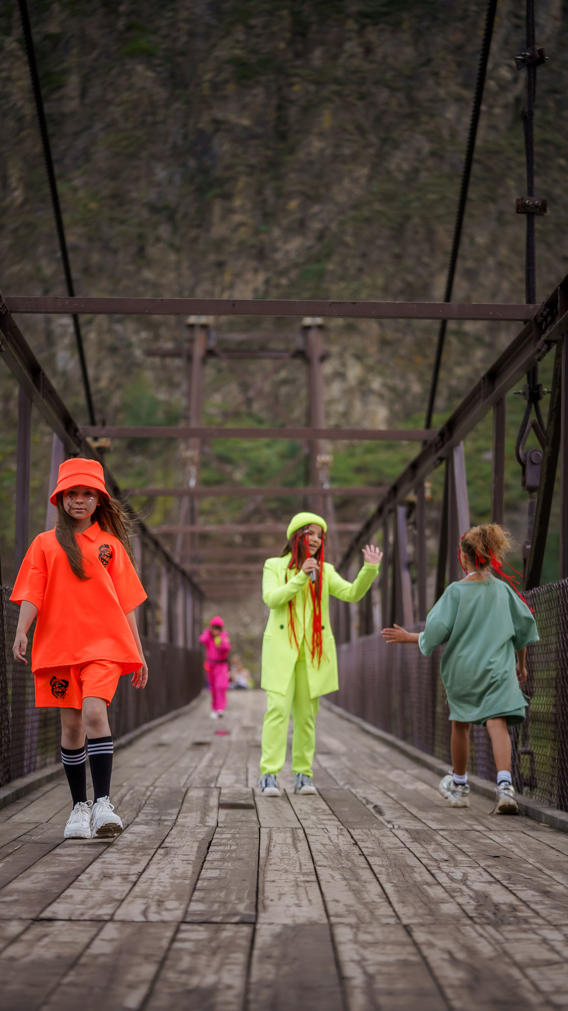 Одной из невероятных локаций для показа, стал подвесной мост через реку Катунь, где в лучших традициях высокой моды, перед моделями стояла задача преодолеть страх высоты, а перед дизайнерами выстроить концепцию так, чтобы она гармонично сочеталась с окружающей красотой природы.