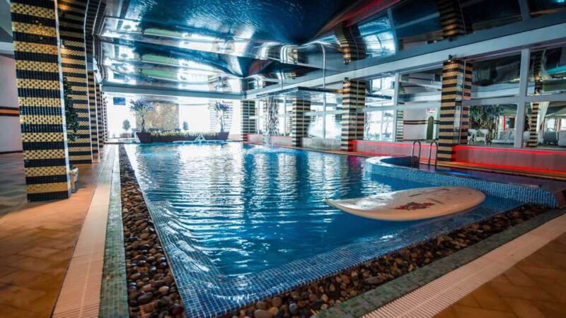Акватермальный комплекс можно назвать визитной карточкой отеля. Он впечатляет своими размерами: 5 бассейнов, финская и соляная сауны, турецкий хамам, русская парная с купелью, инфракрасная сауна, geo-spa купели с тремя видами глины. Особой популярностью у гостей пользуется бассейн “Мёртвое море» .