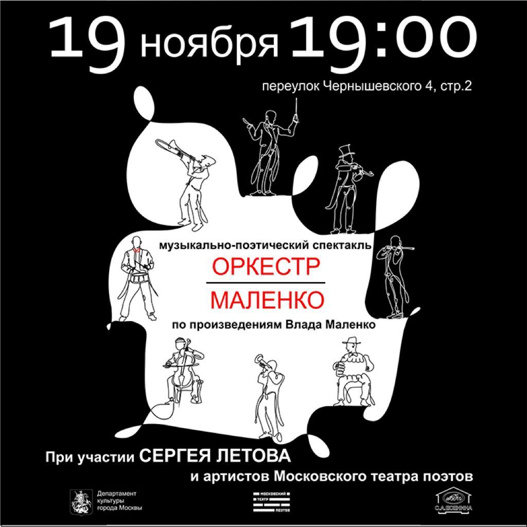 Немаловажной отличительной особенностью Влада Маленко, как актёра и режиссёра, является прямое и живое взаимодействие с публикой. Следует отметить, что это не в классическом понимании иммерсивный спектакль, ведь зритель незаметно для себя вовлекается в действие. В постановке «Оркестр Маленко», хоть и являющейся по большей части моноспектаклем, помимо музыкантов, примут участие молодые артисты и поэты Московского театра поэтов. В повествовании найдется место и лирическим мотивам, и гражданской позиции, и, юмору, ведь с баснями Влада Маленко уже многие годы абитуриенты поступают в актёрские училища, а с 2017-го года было поставлено уже два спектакля по его басням: «Контрабасни» (режиссёр Алёна Муратова), ставший репертуарным в Центре драматургии и режиссуры, и «Осторожно! Басни» (режиссёр Влад Маленко), который является репертуарным сейчас в театре Et Cetera.
