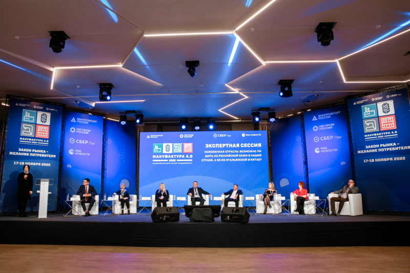 Москва, 24 ноября 2022 года. В Москве в конгресс-центре Grand Ballroom прошел второй этап Всероссийского отраслевого форума легкой промышленности «Мануфактура 4.0». В рамках деловой программы форума была организована сессия «Кожевенная отрасль: возможно ли шить из Российской кожи в нашей стране, а не из итальянской в Китае?».