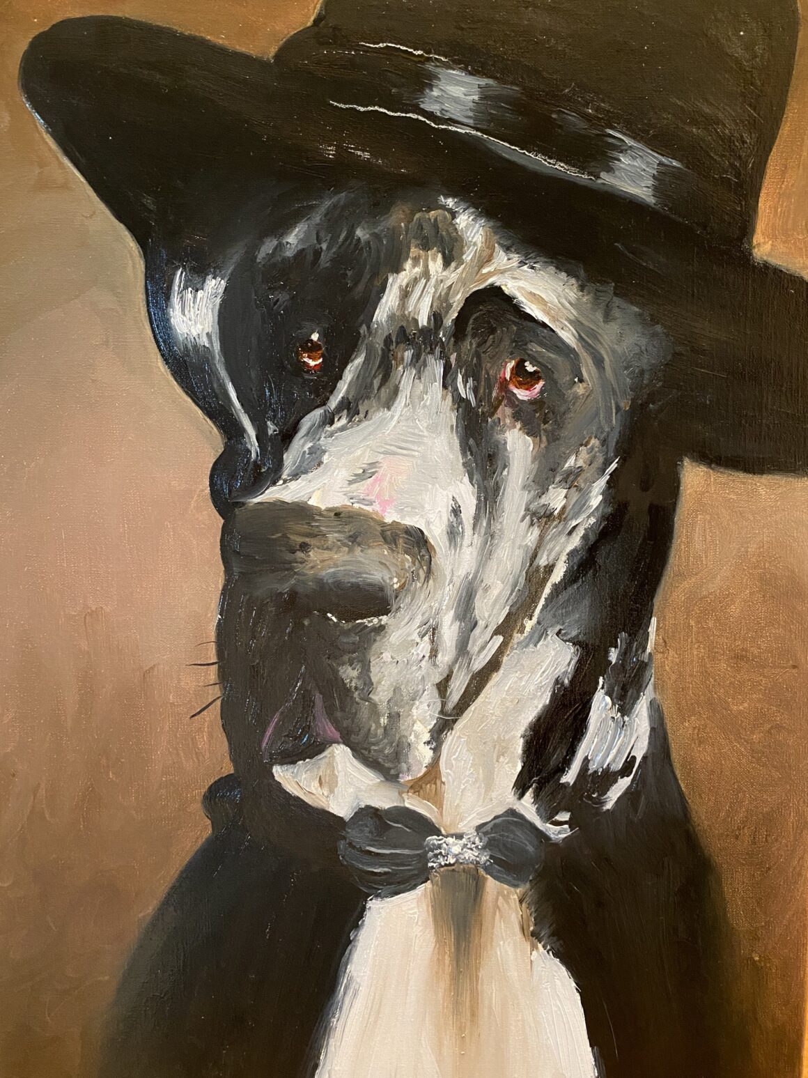 Одна из картин Наталии называется «Джентельмен», главный герой работы — немецкий дог Гектор, который и явился вдохновителем для Художницы. Вторая работа, «Пушистый друг», на ней изображена голубоглазая кошка.