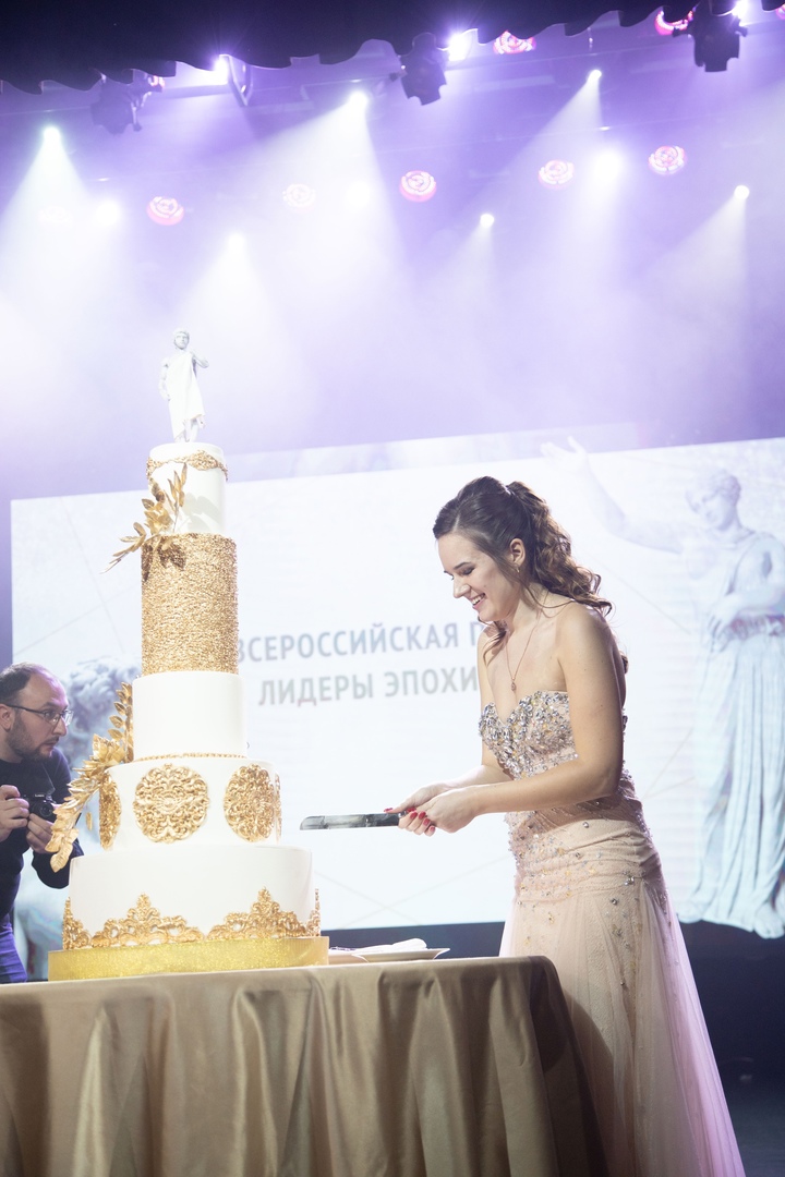 Великолепным заключительным аккордом вечера стало разрезание шикарного праздничного торта, созданного профессиональными руками талантливого кондитера-художника Дилфузы Кабиловой. Торт был выполнен в античном стиле, изысканно украшен золотыми листьями лавра и венками из него, во главе торта красовалась античная статуя Давида, высота торта составила 1,5 метра. Все оформление торта и само мероприятие соответствовало тематике и философии мероприятия, и было выполнено в едином стиле. Статуэтки, которыми были награждены победители премии были выполнены в античном стиле в виде бюста Давида.