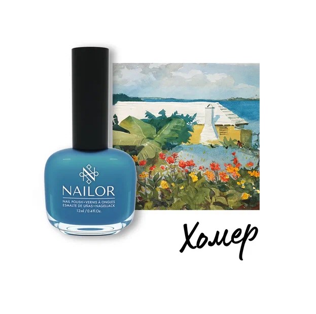 Беззаботный сине-голубой оттенок, вдохновленный пронзительной акварелью Уинслоу Хомера «Цветочный сад и бунгало». С помощью тонкого баланса между синим, голубым, зеленым и серым пигментами мы постарались передать яркую, переменчивую лазурь морского побережья, блики прогретой на солнце воды и свежесть бриза.