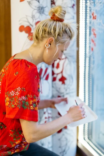«Особенностью моей работы, является создание декоративных элементов проекта полностью вручную, наряду с непревзойденным вниманием к деталям», — отмечает Таня Hikimastery. Помимо вдохновения старинными европейскими открытками, при работе над созданием иллюстрации для оформления окон салонов «Пальчики», художница также обращалась к ботаническим иллюстрациям, графике современных и признанных деятелей искусства, например, Philippa Nikulinsky, Edith Rewa Barrett, Kelly Ventura и Shira Barzilay, а также красным оттенкам из палитры лаков Nailor.