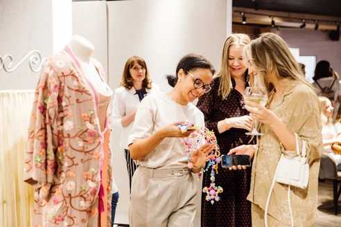 А яркие платья, провокационные вырезы и крупные украшения от шоу-рума GOMA&CO создавали эффектный образ для богемного выхода на открытие художественной галереи. Звездный визажист Юрий Столяров лично провел для гостей Первой Женской Академии мастер-класс по актуальным трендам макияжа. Ведущая мероприятия Евгения Кор поддерживала легкое настроение гостей, вдохновляя публику на дружеские беседы и новые знакомства. Музыкальное сопровождение и теплую атмосферу обеспечивала Ассоциация Российских Ивент Диджеев. Атмосферу праздника дополнили живописные полотна художника Оксаны Слободиной.
