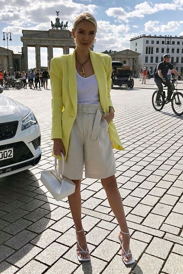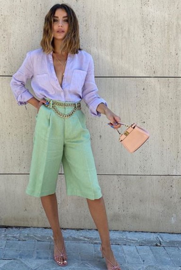 Образы с шортами универсальны: их можно носить в офис при нестрогом дресс-коде, а также на прогулку, в кафе, парк, гости. В зависимости от мероприятия, сочетайте с любой актуальной обувью: подойдут кроссовки, мюли, «дедушкины» сандалии, плетеная обувь, лодочки, лоферы, босоножки. В качестве базы выбирайте классические шорты-бермуды в нейтральных оттенках: светло-серый, бежевый, белый, молочный. Дополните их цветными рубашками, топами, футболками. Не забудьте о сумке, украшениях, ремне. В итоге у вас получится целая мини-капсула.