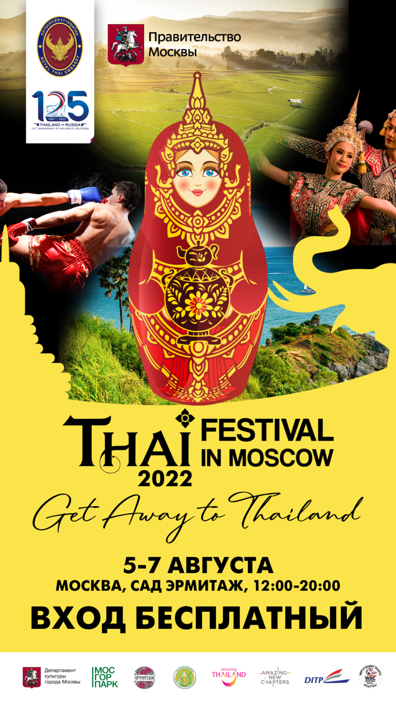 5, 6 и 7 августа на территории сада «Эрмитаж» пройдет THAI FESTIVAL IN MOSCOW 2022. Посольство Королевства Таиланд в России совместно с Правительством Москвы представляют аутентичный фестиваль, посвященный культуре Таиланда.