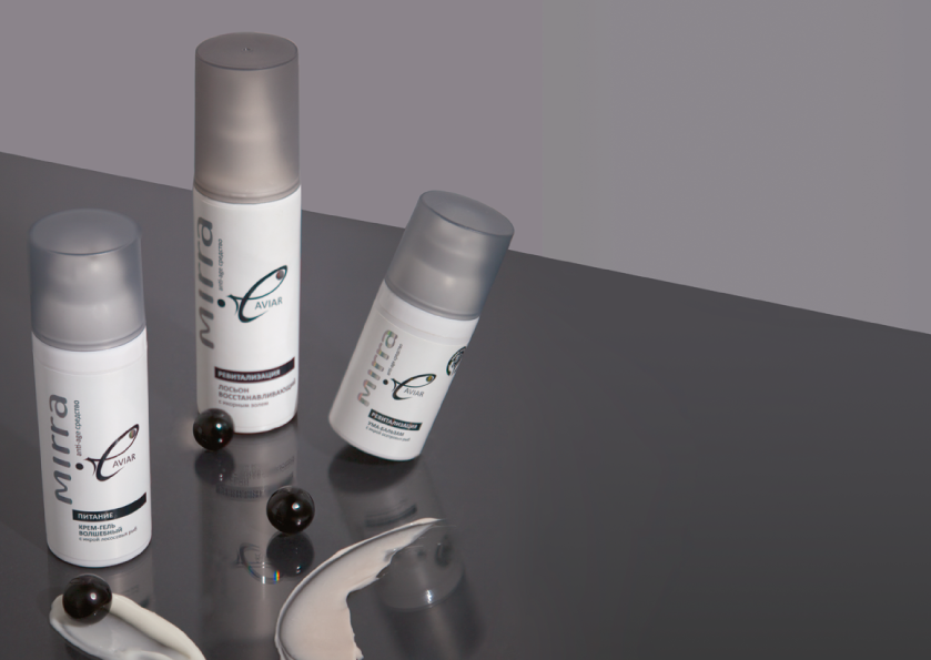 MIRRA Caviar – линия средств на основе уникальных свойств икры лососевых и осетровых рыб, которые способствуют активизации процессов восстановления кожи на клеточном уровне. Главный принцип действия средств MIRRA Caviar – коррекция повреждений и изменений кожи, стимуляция образования собственного коллагена и эластина в тканях, совершенствование рельефа и профилактика преждевременного старения. Совершенная технология обработки икры, разработанная и запатентованная MIRRA, позволяет вводить в косметические средства цельную икру, получая максимальных результат от целительных свойств каждой икринки. Эффективность средств подтверждена клиническими исследованиями в независимых учреждениях.