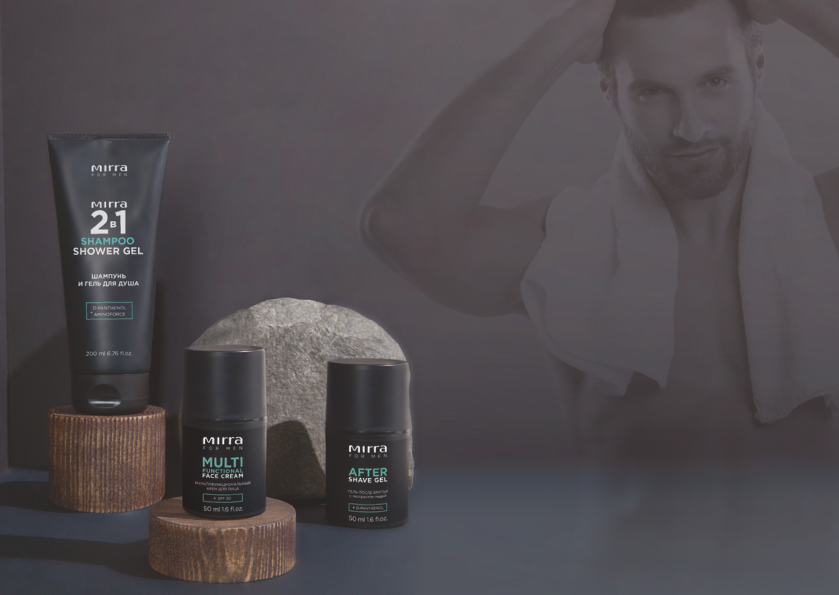 Линия MIRRA MEN – Smart-коллекция средств, созданная специально для ухода за мужской кожей с учетом ее особенностей. Мужская кожа – более плотная, но не менее чувствительная, чем женская, и также нуждается в специальном уходе, основными этапами которого являются очищение, увлажнение или питание. Инновационная умная формула ухода за мужской кожей от MIRRA подарит ей бережную заботу, окажет успокаивающий эффект и придаст свежесть и бодрость на весь день. В коллекцию также входит специальный Мультифункциональный крем для лица с защитой от солнечного излучения SPF20, который поможет защитить мужскую кожу от внешних воздействий, в частности, от ультрафиолета в сезон активного солнца.