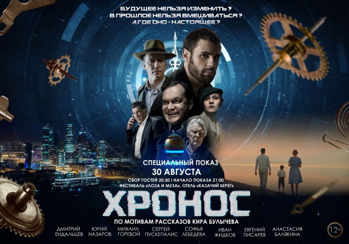 Впервые, в рамках фестивальной недели проекта «Лоза и Муза», состоится кино-party на берегу Азовского моря! Гостей фестиваля и отеля «Казачий Берег» ждёт специальный кинопоказ фантастической драмы «Хронос» и встреча с продюсерами фильма Дмитрием Белосоховым и Эльбором Черновым. Мероприятие также посетит актриса фильма Виктория Качуровская. Художественный фильм «Хронос» снят по мотивам произведений великого российского фантаста Кира Булычёва. В ролях: Михаил Горевой, Сергей Пускепалис, Дмитрий Ендальцев и др.