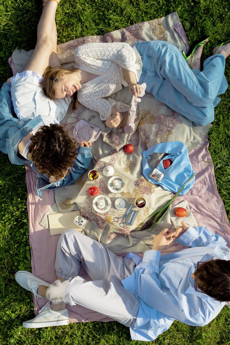 Связующим звеном коллекции стала скатерть ручной работы, созданная в единственном экземпляре. Рисунок скатерти напоминает узоры коры разных видов деревьев, от березы до платана. Главная ассоциация – купальское дерево, один из ключевых атрибутов праздника.