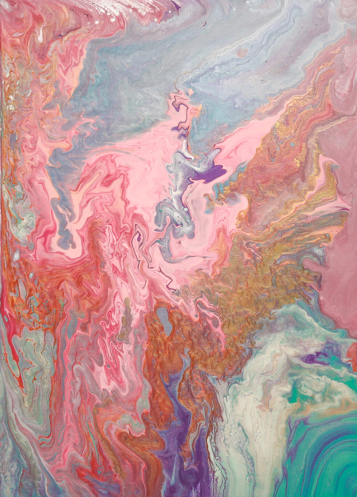 Жанр Dutch Pour Art предполагает работу с жидким, льющимся акрилом. В качестве разбавителя, используется специальный медиум, работа ведется по холсту. Ирина рассказывает: «Мне очень нравится, что эта техника не обязательно предполагает работу кистями. Чаще всего я использую фен при работе с наложением цветов и создании объемных текстур. Вы не поверите сколько неожиданных подручных материалов идёт в ход: стаканчики, различные воронки, трубочки, губки, палочки для кофе, деревянные шпажки, собственные пальцы и еще куча всего! Моя техника предполагает свободный полёт фантазии и абсолютную свободу действий в пользу достижения необходимого результата и реализации замысла».