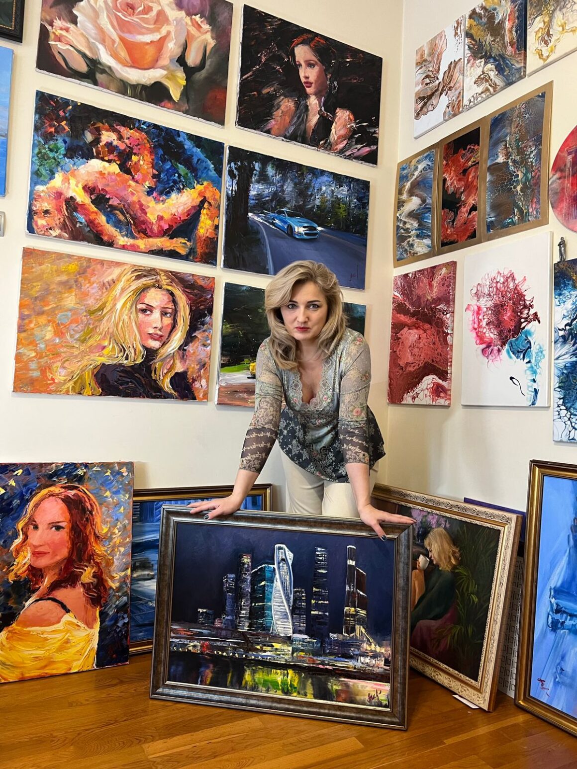 Я пока не работаю с какой-то определенной галереей, участвую в различных совместных проектах и экспозициях. Мои работы выставлялись в музее А. Н. Скрябина в Москве, нескольких московских галереях, украшают стены отеля «Грифон» в сердце Санкт-Петербурга. Из последнего — участие на Московской Arts & Fashion biennale в ноябре 2021 года. В следующем году планируется моя персональная выставка. Посмотреть, приобрести или заказать мои работы можно на странице в инстаграм.