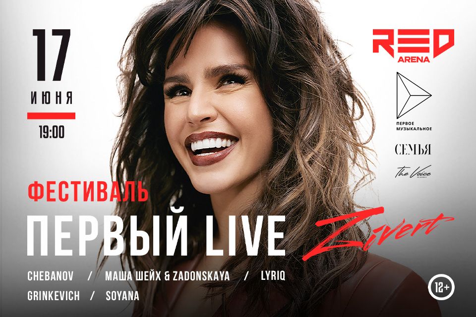 Масштабное музыкальное событие «Первый LIVE» пройдет 17 июня в RED ARENA. Гостей ждут горячие хиты от любимых исполнителей и новые творческие явления с ошеломительной и неподражаемой ZIVERT и шоу-программой топовых артистов: CHEBANOV, LYRIQ, Маша Шейх & Zadonskaya, SOYANA, GRINKEVICH и других исполнителей самого крупного российского лейбла «Первое Музыкальное».