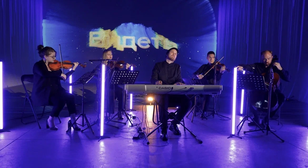 В проекционном зале «Внутришоу» вы в прямом смысле оказываетесь внутри шоу. Пол и стены буквально погружают вас в контент, а музыканты находятся рядом с вами на протяжении всего представления.