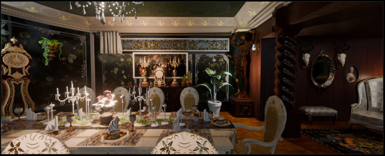На экспозиции, представленной во Всероссийском музее декоративного искусства, встретятся прошлое и будущее: мультимедийные полотна, написанные искусственным интеллектом, и музейные артефакты. Нейросеть погрузит зрителя в атмосферу конца 19го — начала 20го века через визуальный ряд, саунд дизайн и увлекательное повествование о таких жанрах как мода, быт, балет и архитектура. Партнером Проекта в создании новых измерений искусства стала студия «Sxema».