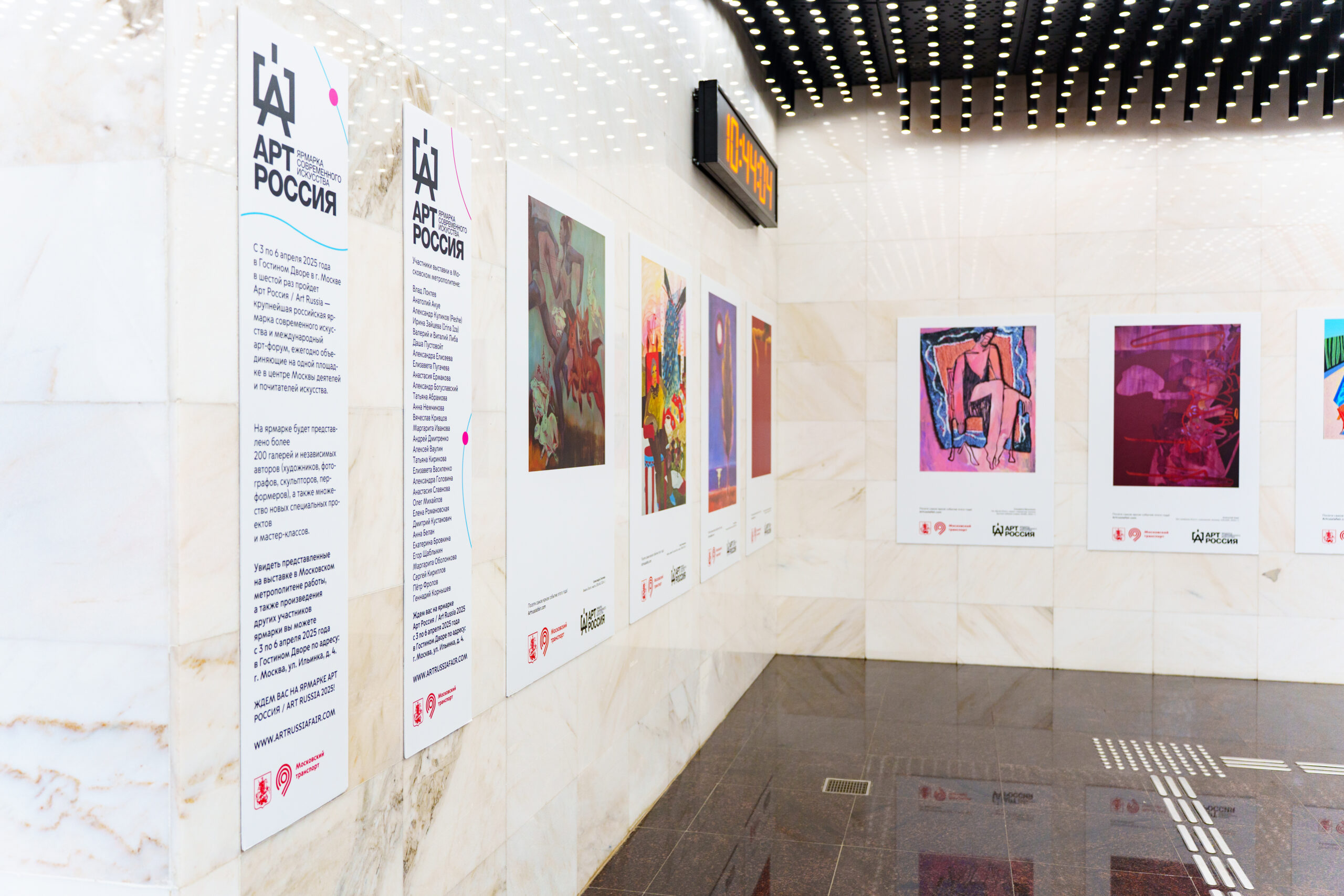 Репродукции картин, отобранных на ярмарку современного искусства «Арт Россия», уже в четвертый раз выставляются на площадках Московского метрополитена.