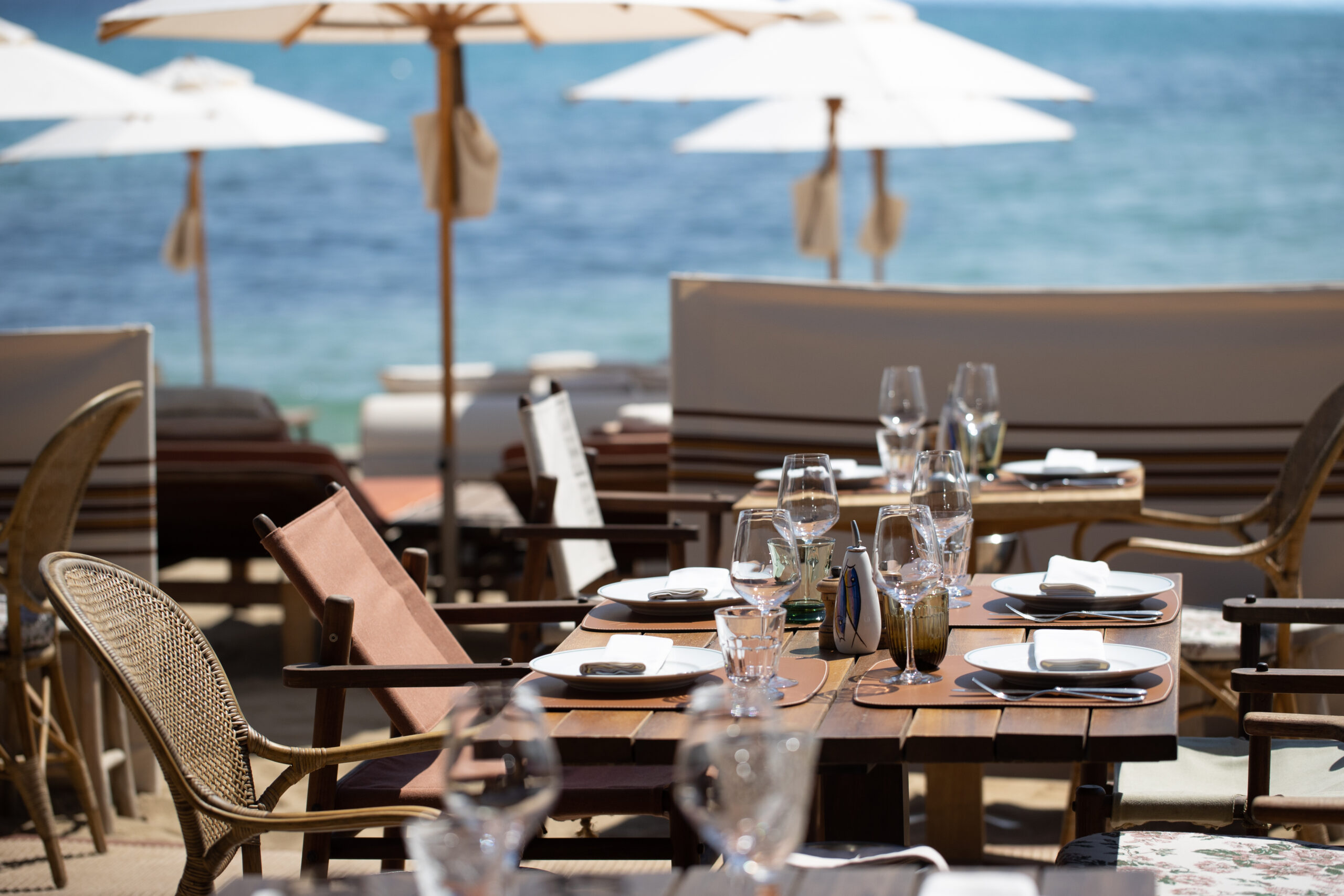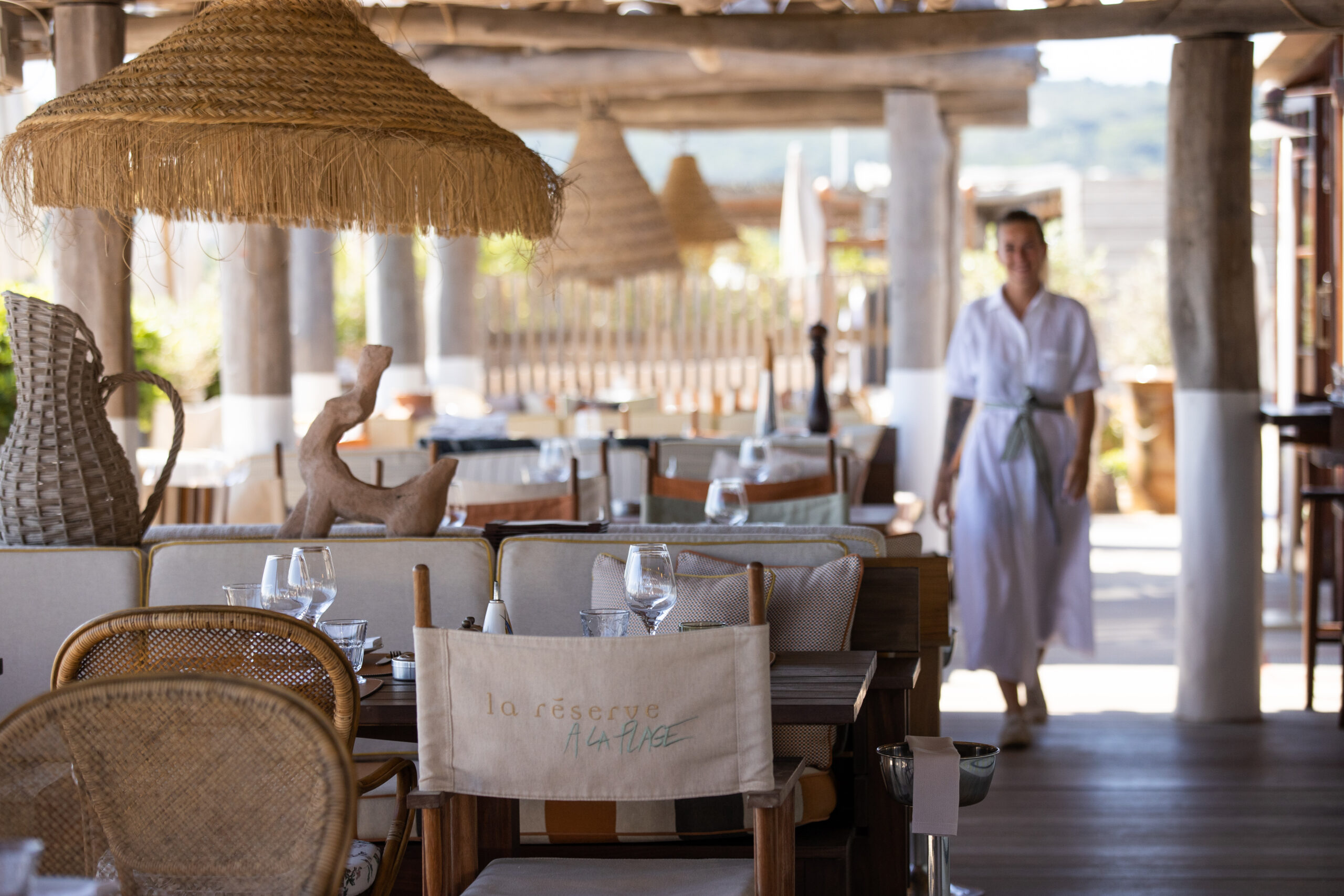 В La Réserve à la Plage в течение дня можно плавно перемещаться с теплого песка на деревянную террасу ресторана, оставаясь всё время босиком и в расслабленном настроении. После солнечных ванн последует легкий ланч, а далее — сиеста на шезлонге, чтобы ближе к вечеру насладиться закатом с бокалом шампанского под музыку диджея.