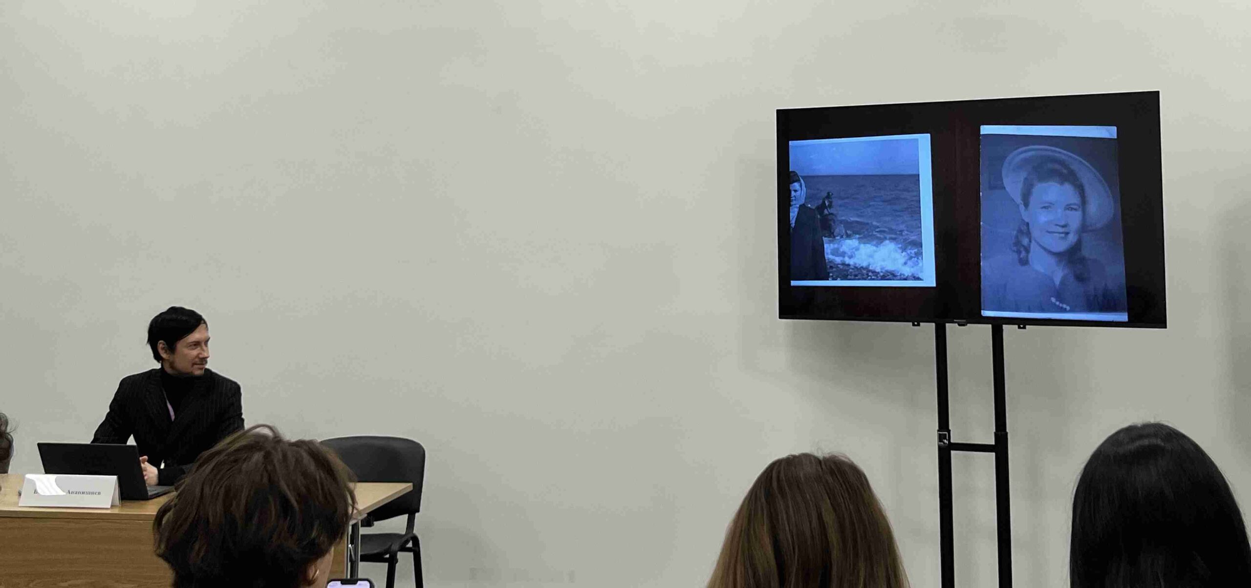 Премьера фильма «История бренда Vladislav Ananishnev» на международной выставке Fashion Style Russia 2024 в Международном выставочном центре «Крокус Экспо». На экране фрагмент с Китовой Надеждой Максимовной (бабушкой Владислава Ананишнева). Фото: Журнал «Богема», Москва, 20.02.2024 г.