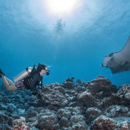 Для сертифицированных дайверов по запросу организуют индивидуальные погружения для знакомства с мантами. В окрестностях курорта есть специальные дайв-споты, которые позволяют дайверам наблюдать за естественным «спа» для мант. Эти места известны как станции очистки, где маленькие рыбки избавляют скатов от кожных паразитов, демонстрируя прекрасный симбиоз морской жизни на Мальдивах.
