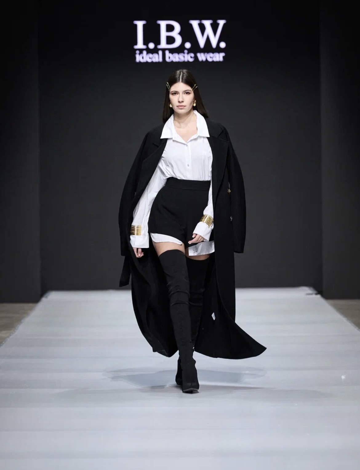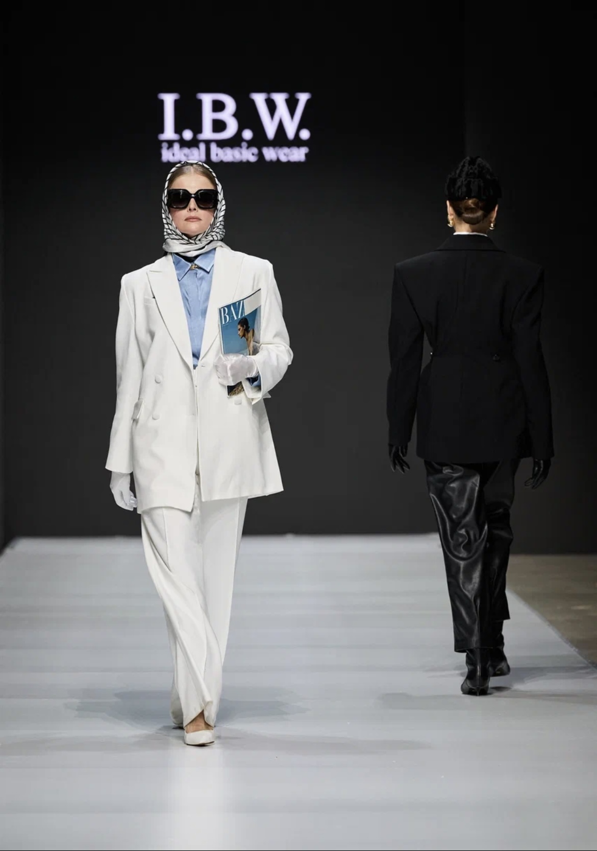 Бренд представил сразу несколько коллекций, наглядно продемонстрировав комбинаторность и функциональность своих изделий. Лаконичный силуэт, выверенные пропорции, правильная посадка и универсальность — ключевые составляющие каждого элемента гардероба от Ideal basic wear. На моделях были представлены платья и рубашки с акцентными вырезами, юбки, джинсы и шорты, брючные костюмы, куртки разных фасонов, пальто, пиджаки с мужского плеча и приталенные жакеты. Особого шика образам добавили аксессуары: украшения из жемчуга, черная фата, шелковый платок, воротник из перьев, пилотки из меха, а также кожаные ремни, перчатки и сумки.