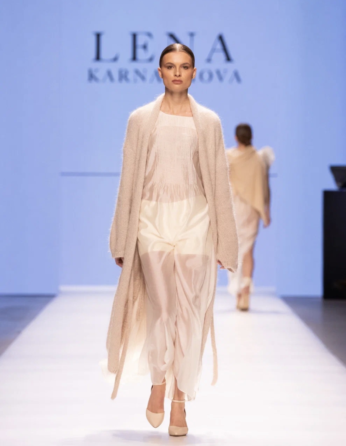 В новой коллекции дизайнер Лена Карнаухова нашла баланс между элегантностью и практичностью. Вдохновением для создания линейки послужила концепция времен года. Суровая зима воплотилась в строгих линиях и ассиметричном крое, весна — в пастельных оттенках и абстрактных принтах, жаркое лето — в струящихся полупрозрачных материалах, а осень — в различной фактуре изделий. Новая коллекция бренда призвана не только подчеркивать индивидуальность, но и обеспечивать комфорт, независимо от сезона и погодных условий. Женская линия включала платья с декоративными узлами и перехлестами тканей, струящиеся комбинации, целую серию пальто и кардиганов, а также комплекты с рубашками и брюками свободного кроя. Мужские образы составляли куртки, кардиганы, комплекты с накидкой и брюками, футболки классического и сложного кроя, свитера и рубашки.
