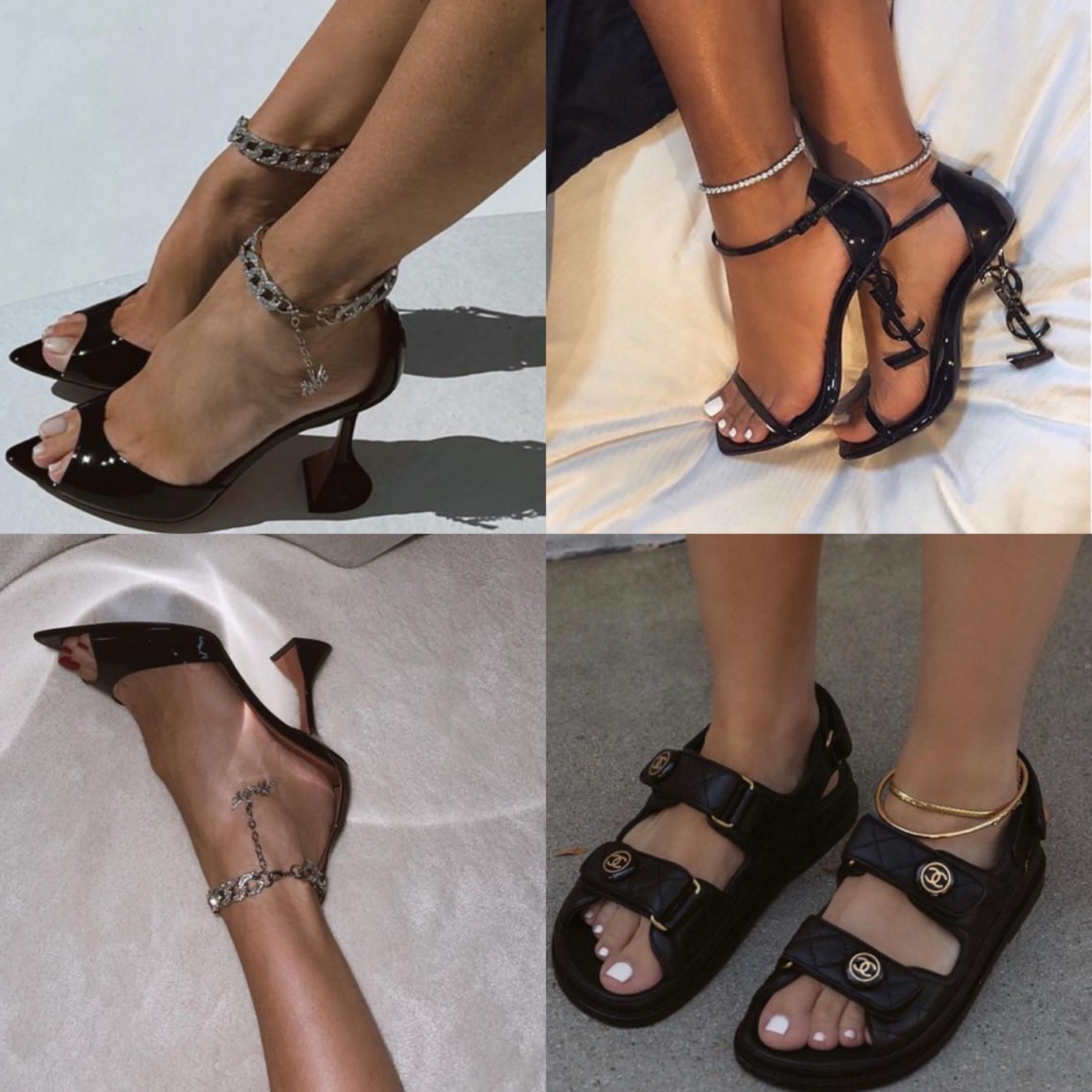 Анклет — цепочка на щиколотку. Такой аксессуар очень любили носить в эпоху хиппи, вспомним 70-ые годы. Свобода, самовыражение, провокация. Позже бум на анклеты спал, но с триумфом вернулся в 90-е, когда Сидни Кроуфорд, секс-символ того времени, стала им украшать свои ножки.