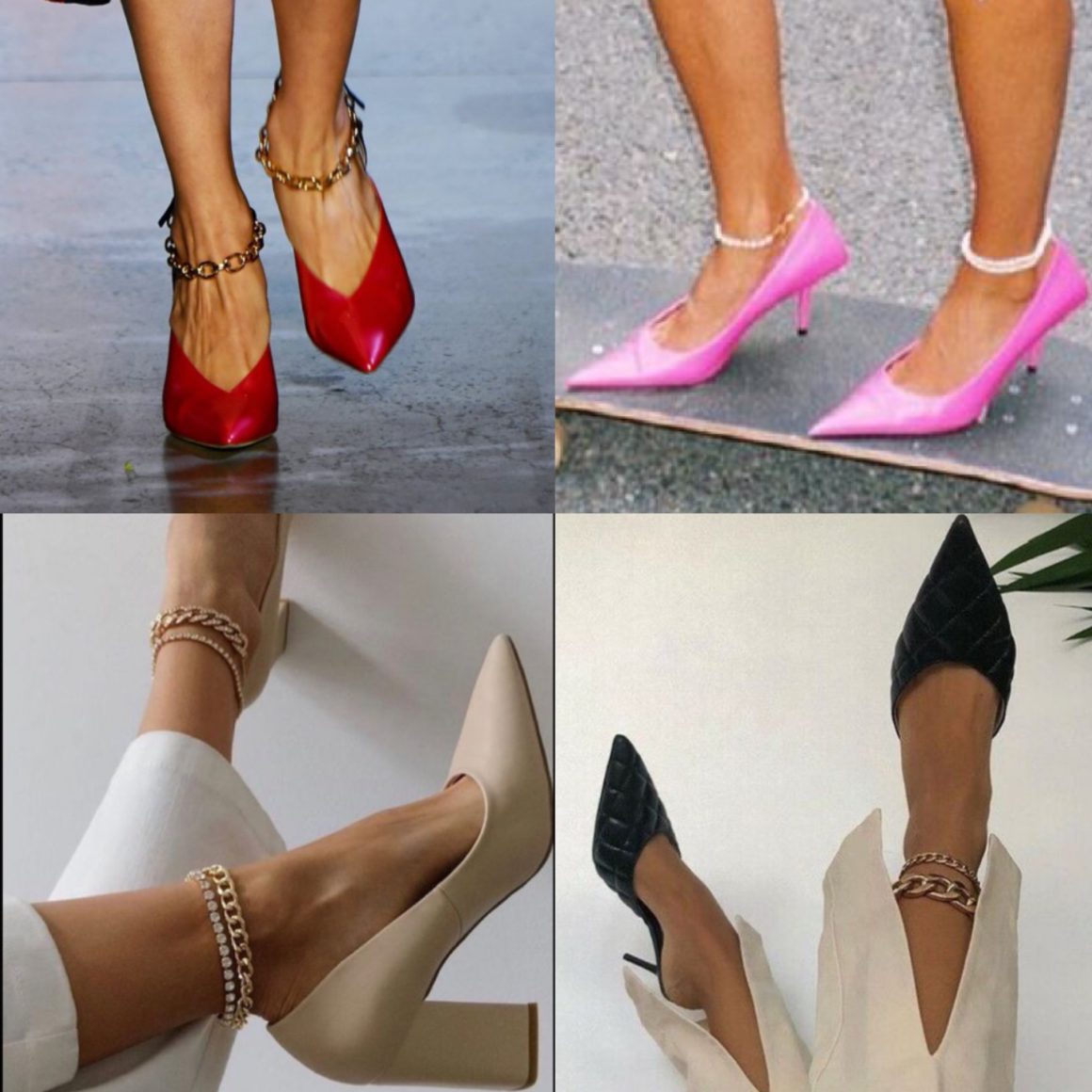 Для вечерних выходов или вечеринок, рекомендуем выбирать анклеты с крупными кристаллами или цепи с крупными звеньями, тогда любые лодочки или босоножки будут выглядеть особенно по-вечернему и создадут яркое праздничное настроение всему образу, даже если на вас будет очень спокойное платье или джинсы с рубашкой.