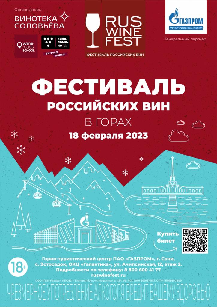 18 февраля в Горно-туристическом центре «Газпром» в развлекательном центре «Галактика» состоится фестиваль российских вин RUSWINEFEST 2023. Время проведения с 14.00 — 20.00.