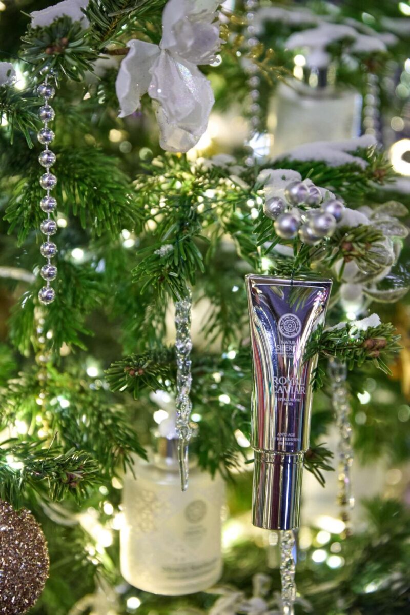 Бренд натуральной и органической косметики на экстрактах сибирских растений Natura Siberica украсил свою трехметровую пихту с помощью диковинных белоснежных цветов и сказочных оленей, символизирующих флору и фауну Сибири. Также в роли новогодних игрушек выступили сияющие флаконы косметических коллекций Royal Caviar и белоснежные упаковки Mystic Sardaana, украшенные «морозными» якутскими орнаментами. Бренд профессионального ухода за волосами ICE Professional использовал в качестве елочных украшений уникальные флаконы-капсулы профессиональной линии ICE New Life, а также брендированные белоснежные шары с надписью ICE.