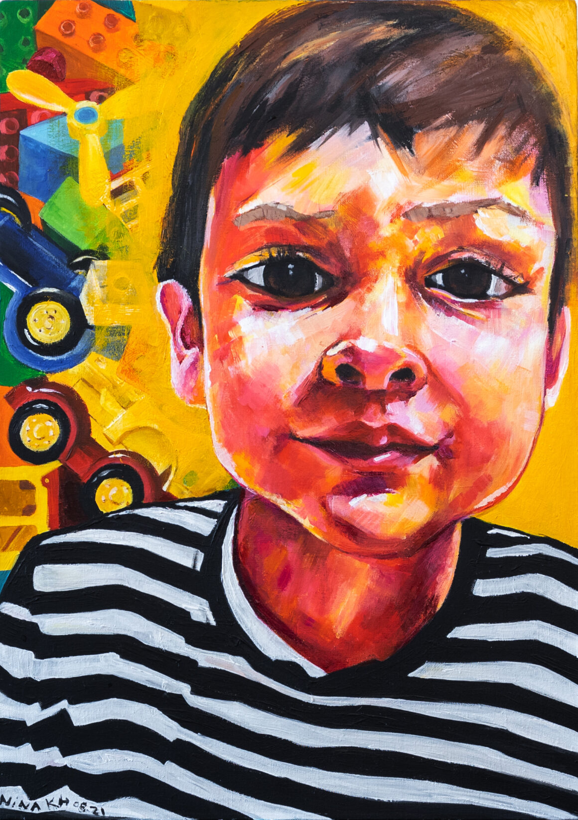 Я задумала написать серию портретов «Эти дети»: портреты детей с чем-то любимым. Неважно, игрушка или самокат, но это ровно то, что в настоящий момент приносит ребенку радость и счастье. Создавая серию портретов детей, я пишу картину не только сегодняшнего, но и будущего облика Земли. Ведь дети – это наше будущее.