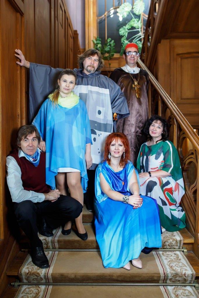 А как вы знаете, друзья, комедия дель-арте — нечастый гость на сценах московских театров. Поэтому я решил узнать у Аллы, насколько для нашего времени актуален этот жанр и почему: «Комедия дель-арте – безусловно, «иностранный» гость, и я прекрасно это понимала, приступая к постановке спектакля, что передо мной стоит непростая задача. Скажу, по секрету, я приступила к постановке при условии, понимая, что мне придется несколько что-то изменить – дописать, переписать, что-то убрать и самое главное — адаптировать как можно ближе и понятнее для российского зрителя. Конечно же, с позволения драматурга. Ведь с одной стороны, мы – россияне и итальянцы – разные, но все мы — люди! Надо только найти общие интересы, чувства, желания, слабости. Я, например, не знала, что некоторые ученые полагают, что россияне и итальянцы имеют общие корни – и ведут они с Северного Кавказа. Да! Да!