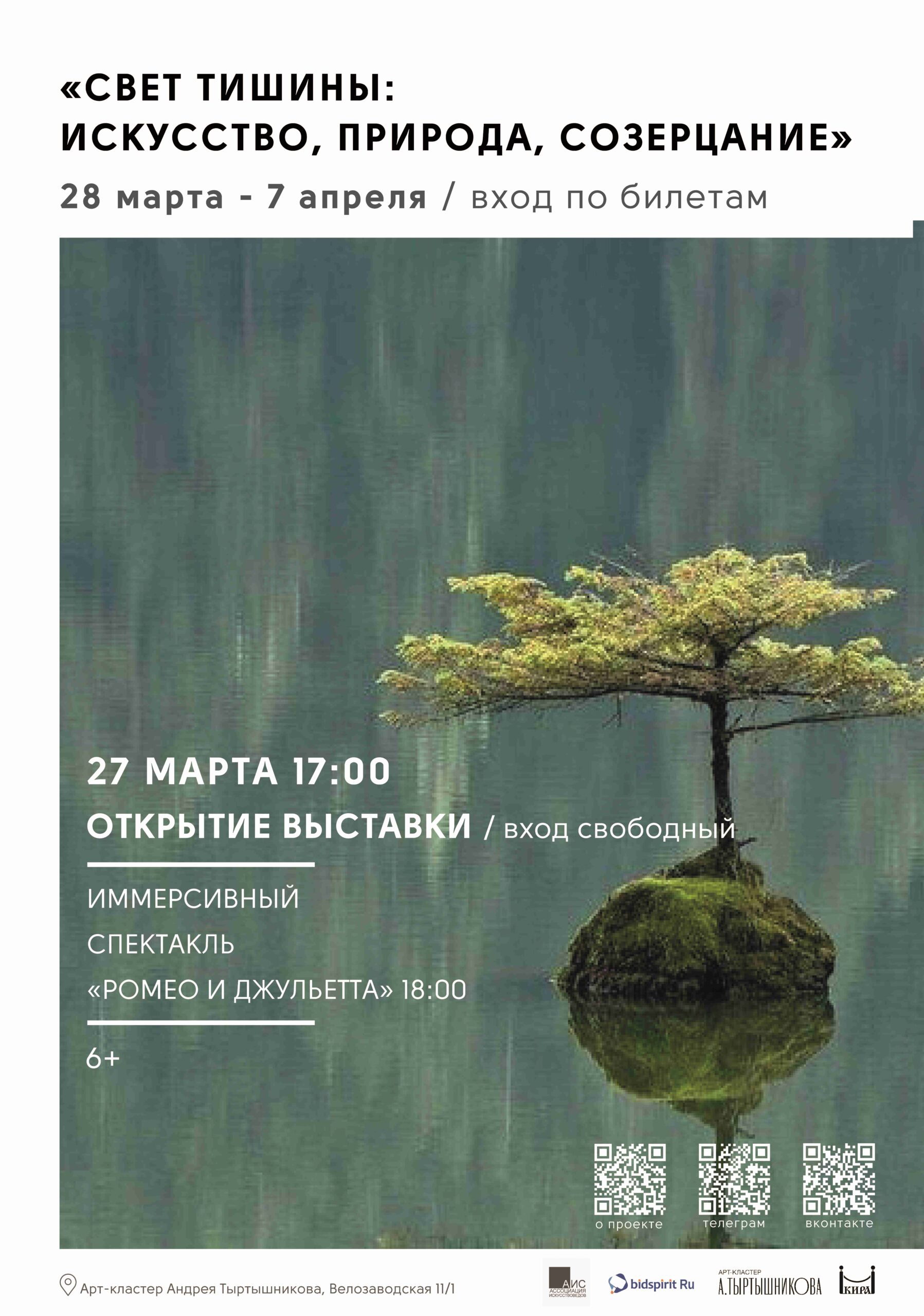 27 марта в 17:00 в арт-кластере Андрея Тыртышникова состоится открытие выставки современного искусства «Свет тишины: искусство, природа, созерцание». Экспозиция объединит более 200 произведений от 40 авторов из разных регионов России. В течение двух недель здесь состоится насыщенная программа: аукцион современного искусства, творческие встречи с авторами, тематические лекции и мастер-классы, показ иммерсивного спектакля и многое другое. Вход на открытие – свободный.