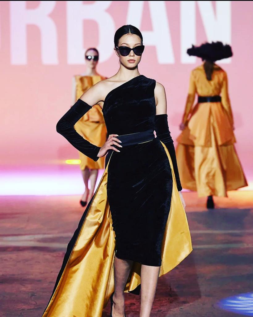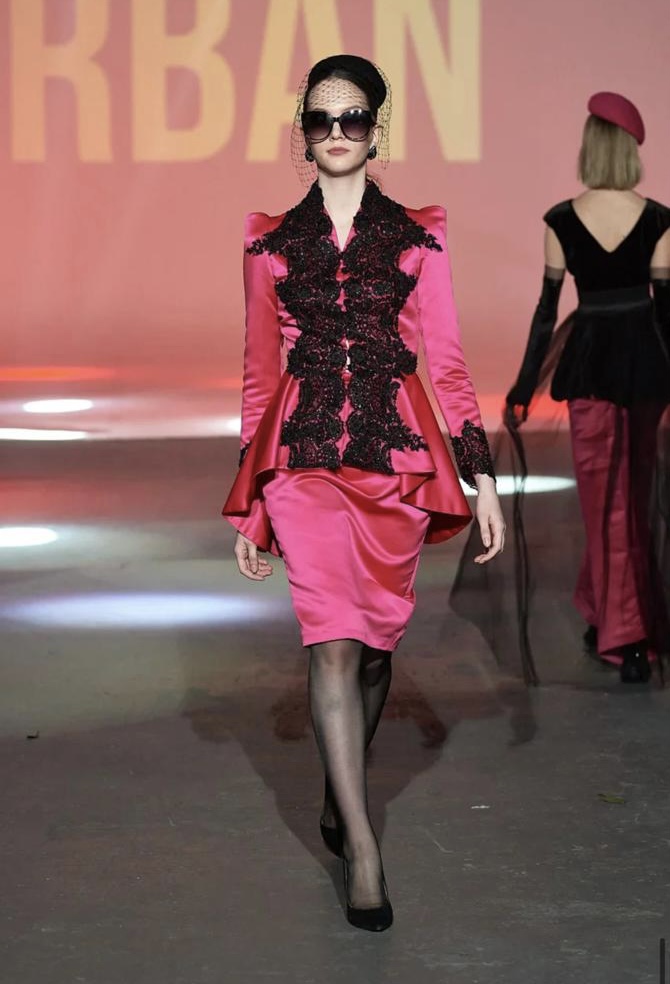 Первую дипломную коллекцию я посвятила своей Маме и назвала ее “Мадам Лю”. Это элегантные вечерние и коктейльные образы. Активный малиновый, удержанный изысканным фасоном. Использованы великолепные ткани: бархат, сатин, шелк, тафта, кружево.