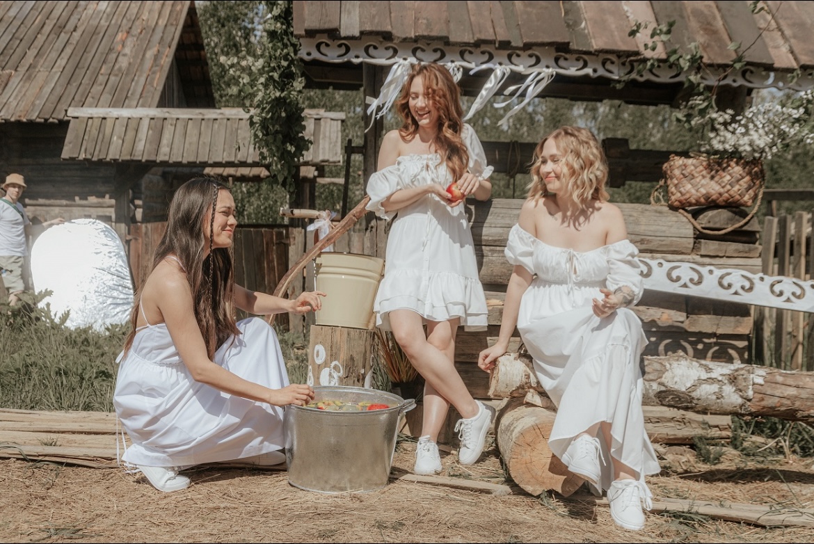 — Думала, что будет более строго: вышел, сыграл и ушел. А здесь кайфово. Нет напряжения. И артистизму учат, — делится София Милёхина из подмосковной Балашихи, — Например, в клипе я играю на свирели. Хотя в реальности я флейтистка, на съемках я освоила новый для себя духовой инструмент — свирель. Здесь стараешься артистически себя показать. Потрясающие практический мастер-класс и опыт я здесь получила! Нравится и то, что клип снимаем в русском народном стиле. Удивительны съемки по эпизодам, с разных ракурсов.