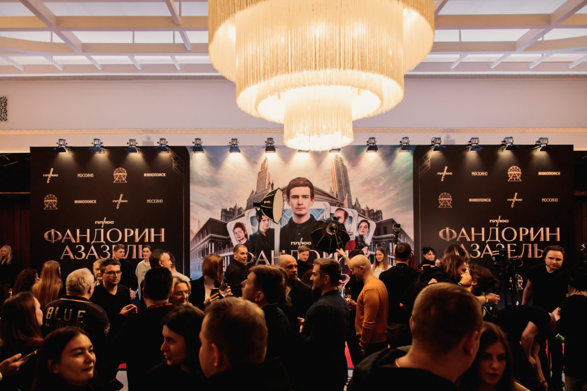 Вчера вечером в кинотеатре «Художественный» состоялась премьера приключенческого сериала «Фандорин. Азазель». Перед показом первого эпизода многосерийный фильм представили сценаристы Сергей и Никита Поповы, продюсеры Ольга Филипук и Михаил Китаев, оператор Николай Богачёв, композитор Райан Оттер, актеры — Владислав Тирон, Сергей Горошко, Евгений Стычкин, Алексей Розин, Дмитрий Ломакин и другие.