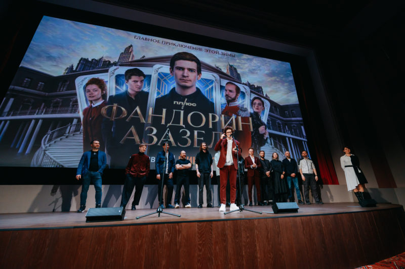 Вчера вечером в кинотеатре «Художественный» состоялась премьера приключенческого сериала «Фандорин. Азазель». Перед показом первого эпизода многосерийный фильм представили сценаристы Сергей и Никита Поповы, продюсеры Ольга Филипук и Михаил Китаев, оператор Николай Богачёв, композитор Райан Оттер, актеры — Владислав Тирон, Сергей Горошко, Евгений Стычкин, Алексей Розин, Дмитрий Ломакин и другие.