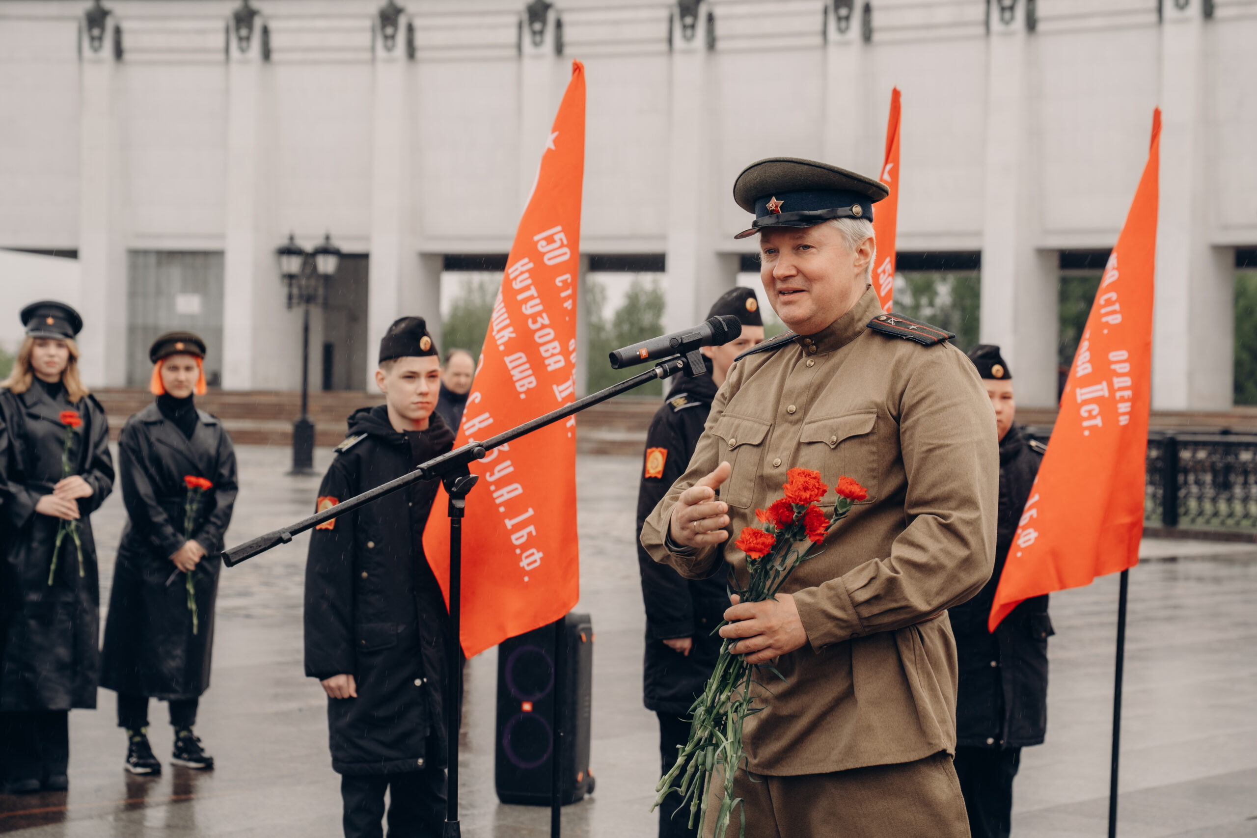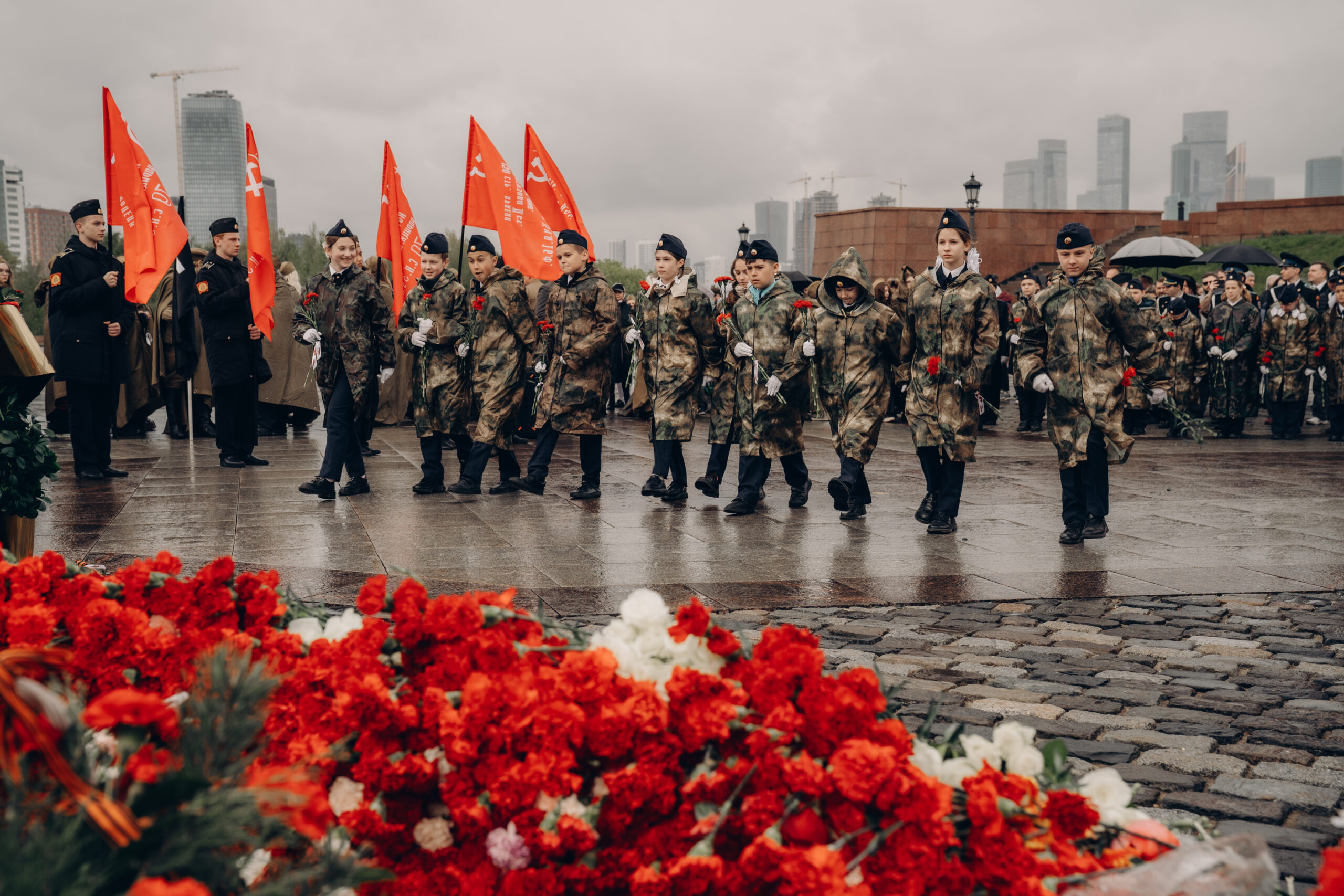 Церемония проходила при участии оркестра и почетного караула Росгвардии. К монументу пришли представители федеральных и региональных органов власти, промышленных предприятий, правнуки инженеров и конструкторов военного времени, студенты московских вузов.
