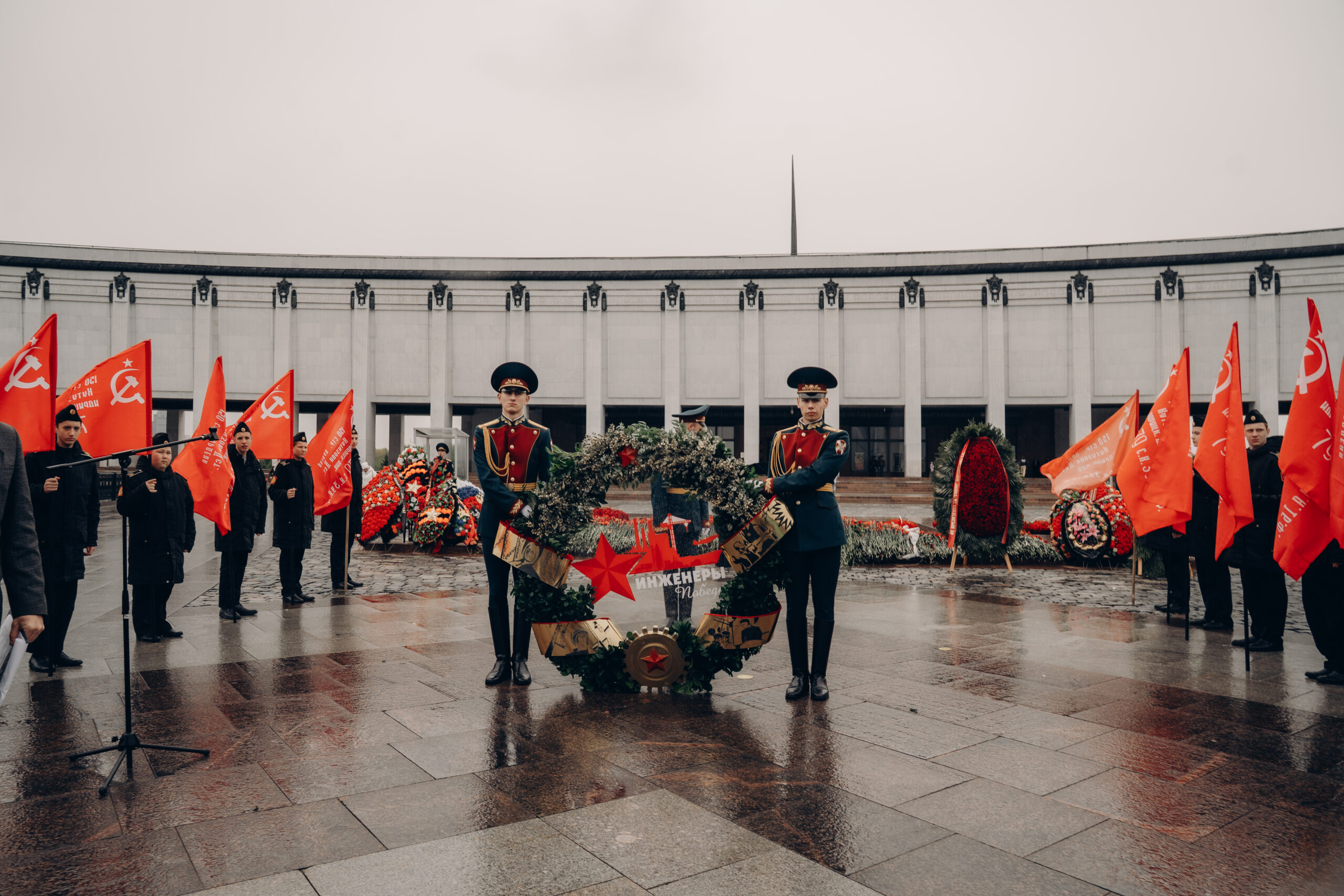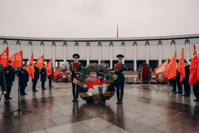 На Поклонной горе состоялась торжественная церемония возложения памятного венка к Вечному огню в рамках проекта «Инженеры Победы», приуроченного к 80-летию Победы в Великой Отечественной войне. Особенностью мероприятия стал уникальный венок, созданный студентами и преподавателями Московского художественно-промышленного института.